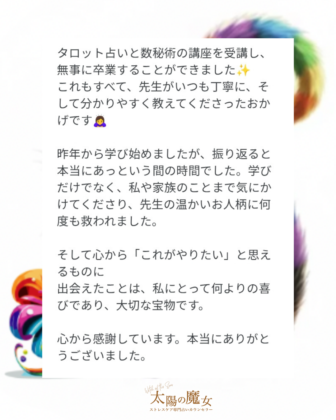太陽の魔女占い教室を卒業された